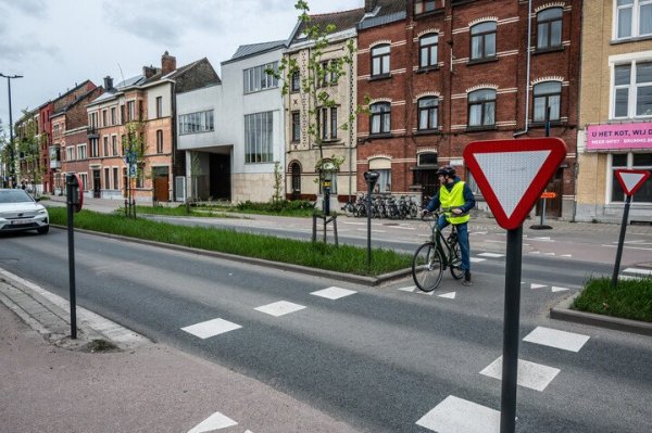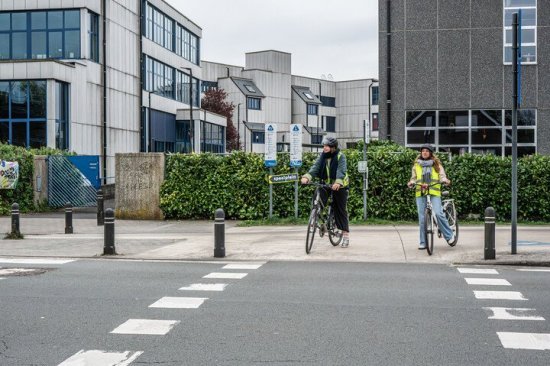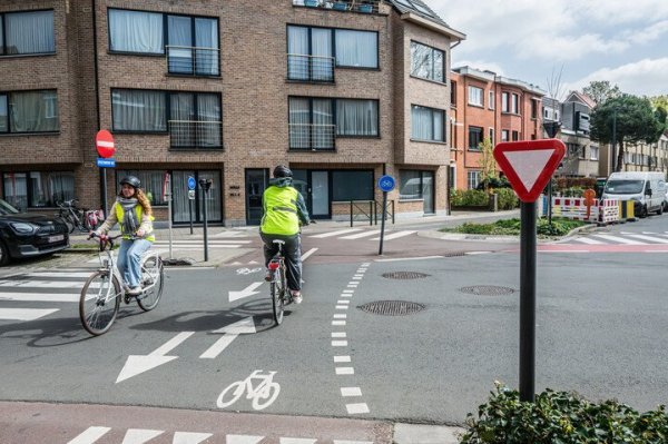 - Recent aangelegde fietsoversteekplaatsen worden met andere wegmarkeringen aangeduid.
