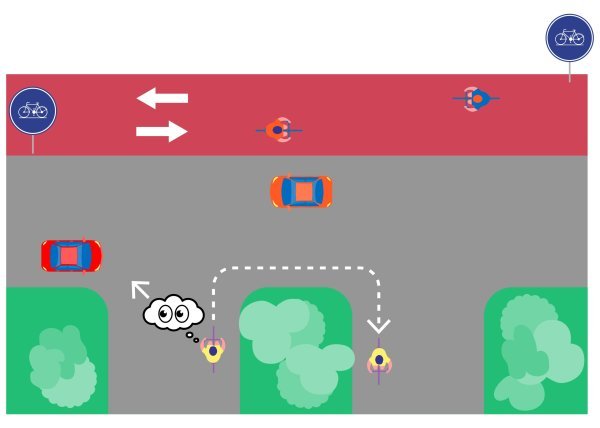 - TIP: Kijk als fietser goed uit als je op een doorlopend fietspad rijdt. Vertraag en maak oogcontact met bestuurders die van rechts komen. Wees zeker dat ze je gezien hebben en voorrang zullen verlenen.