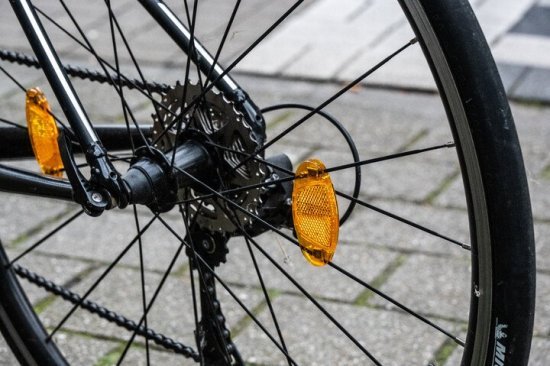 Zijn twee oranje zijdelingse reflectoren per wiel verplicht op een koersfiets?