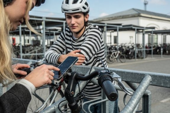 - Plak de (moeilijk verwijderbare) sticker met QR-code zichtbaar op je fiets.