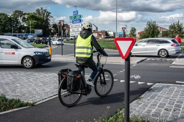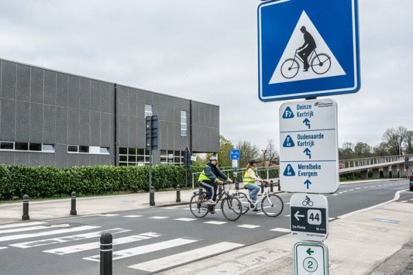 - Recent aangelegde fietsoversteekplaatsen worden met andere wegmarkeringen aangeduid.